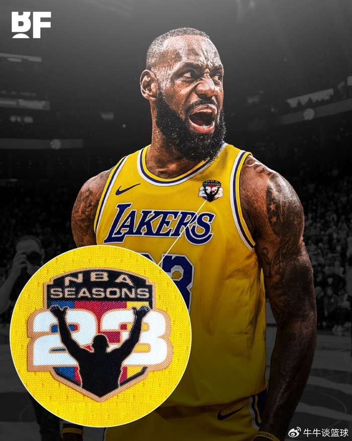 据ESPN记者Dave McMenamin报道,从今天湖人对阵国王的比赛开始,詹姆斯的球衣上将配有特殊的纪念臂章,以纪念他创纪录的第23个NBA赛季。